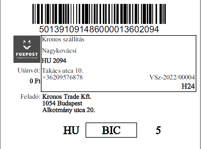 • Foxpost csomag címke